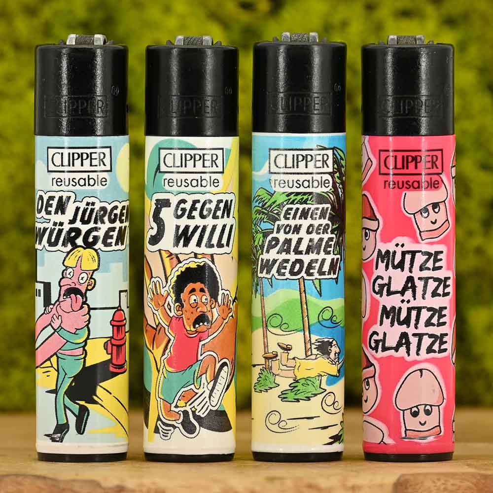 Das besondere an Clipper Feuerzeugen ist, dass die Flamme sich beim schräg halten fast um das Doppelte vergrößert - ideal zum Anfeuern von Bongs & Pfeifen. Der herausnehmbare Zündstift, der eigentlich zum Auswechseln des Feuersteins dient, ist ein ideales Stopfwerkzeug.