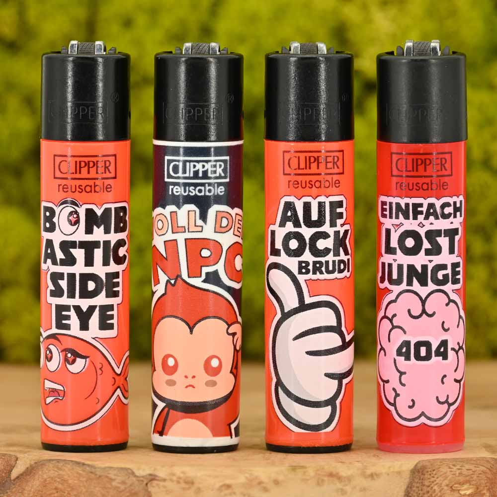 Das besondere an Clipper Feuerzeugen ist, dass die Flamme sich beim schräg halten fast um das Doppelte vergrößert - ideal zum Anfeuern von Bongs & Pfeifen. Der herausnehmbare Zündstift, der eigentlich zum Auswechseln des Feuersteins dient, ist ein ideales Stopfwerkzeug.