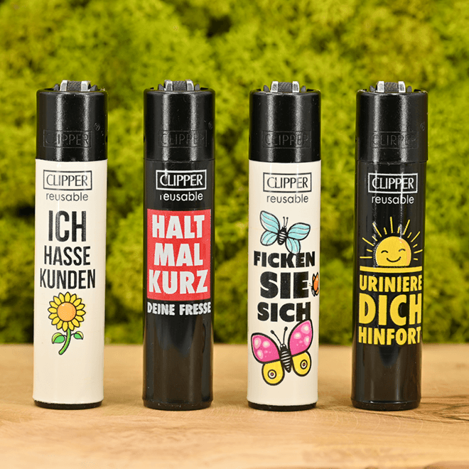 Das besondere an Clipper Feuerzeugen ist, dass die Flamme sich beim schräg halten fast um das Doppelte vergrößert - ideal zum Anfeuern von Bongs & Pfeifen. Der herausnehmbare Zündstift, der eigentlich zum Auswechseln des Feuersteins dient, ist ein ideales Stopfwerkzeug.