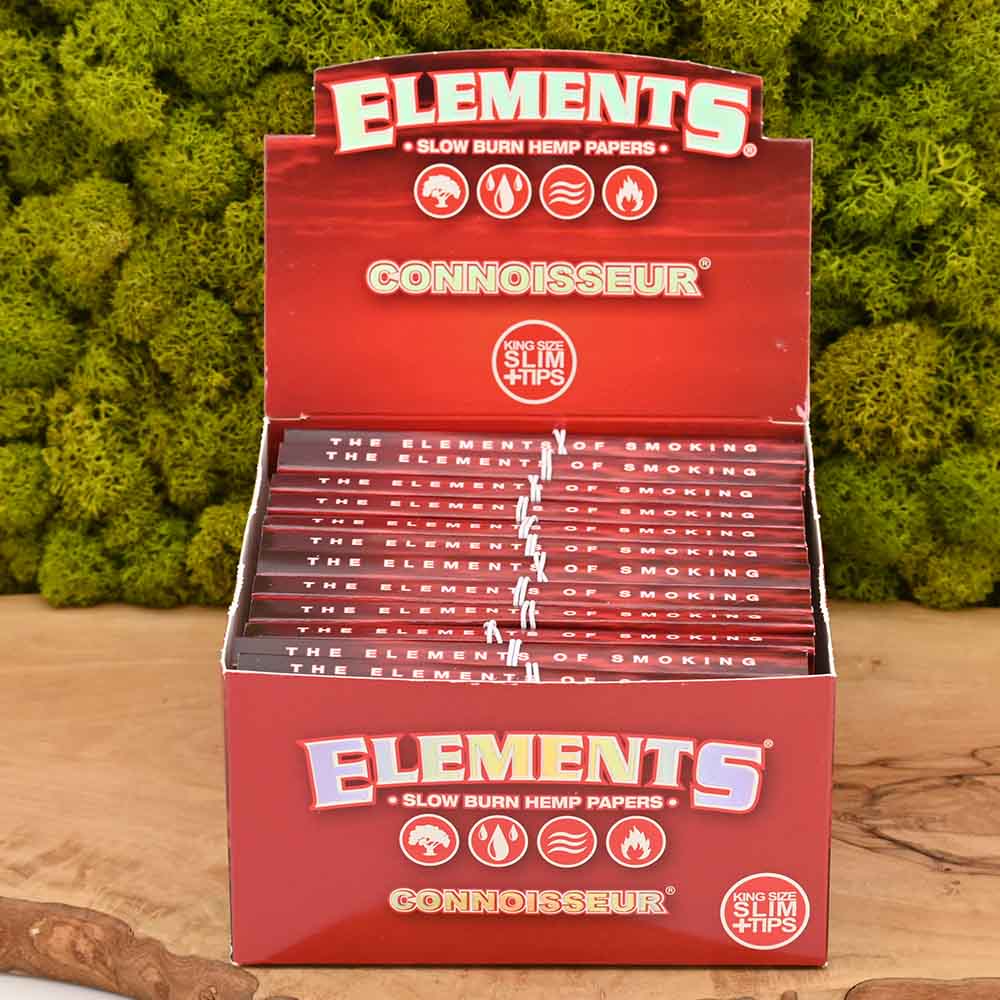 Elements Connoisseur King Size Slim Papers - Rot - Display Box (24 Stück)