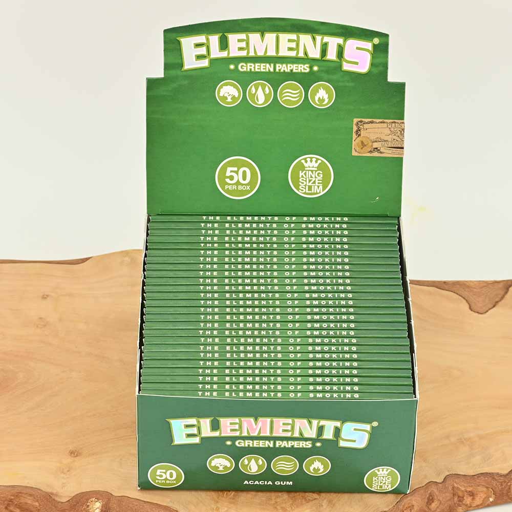 Elements Kingsize Slim Papers in kompletter Box. Du erhältst 50 Kingsize Slim Papers von Elements.