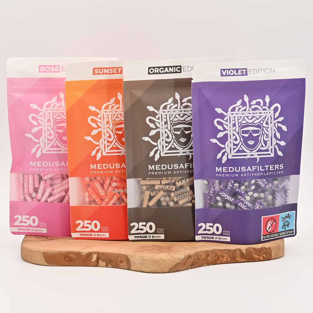 Die im perfekten Verhältnis kombinierten Bestandteile der MEDUSAFILTERS sorgen für ein super angenehmes Rauchgefühl mit gefiltertem, reinerem Geschmack. Und überzeugen auch hartgesottene Aktivkohlegegner.