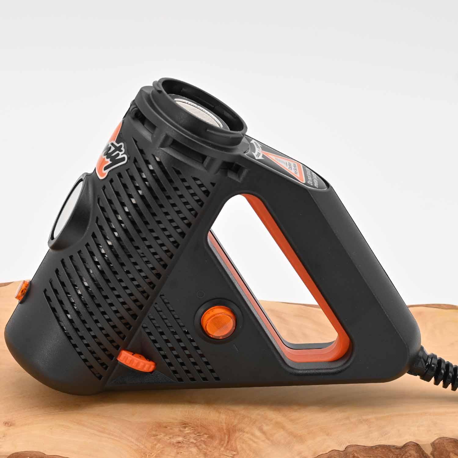 Das Gerät kühlt, aus Sicherheitsgründen, automatisch nach einer gewissen Zeit wieder ab. Sollten Sie dieses nicht wollen, gibt es am Griff einen Schalter mit welchem die Temperatur dauerndnachreguliert wird und beständig bleibt. Die Füllkammer, so wie das Mundstück, können einfach durch eindrehen, an das Gerät angebracht werden. Es wird empfohlen die Füllkammer immer komplett zu füllen.Sollten nicht genügend Kräuter vorhanden sein, gibt es ein mitgeliefertes Kissen, welchesden restlichen Raum ausfüllt.