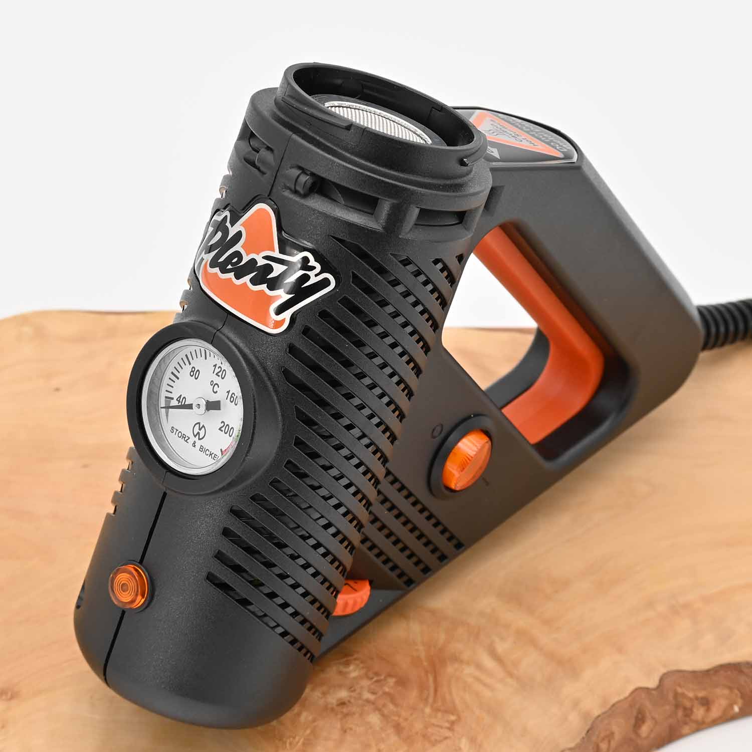 Der 'Plenty' von STORZ+BICKEL besticht als erstes durchsein aussergewöhnliches Design. Aber auch die Funktionen könnenüberzeugen. Der Vaporizer besitzt ein Drehrad für die Temperaturregelung in 7 Stufen, je nach Kräuterart.