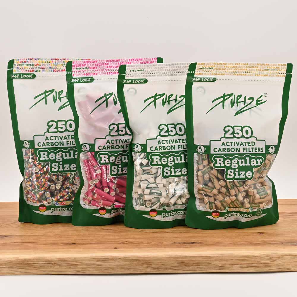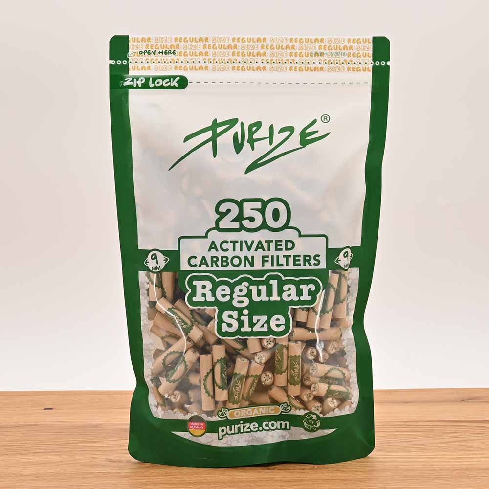 Die Aktivkohlefilter von Purize basieren auf Kokosnuss-Basis im praktischen 250er Pack. Es handelt sich hierbei um Aktivkohlefilter Regular Size mit ø 9 mm Durchmesser.