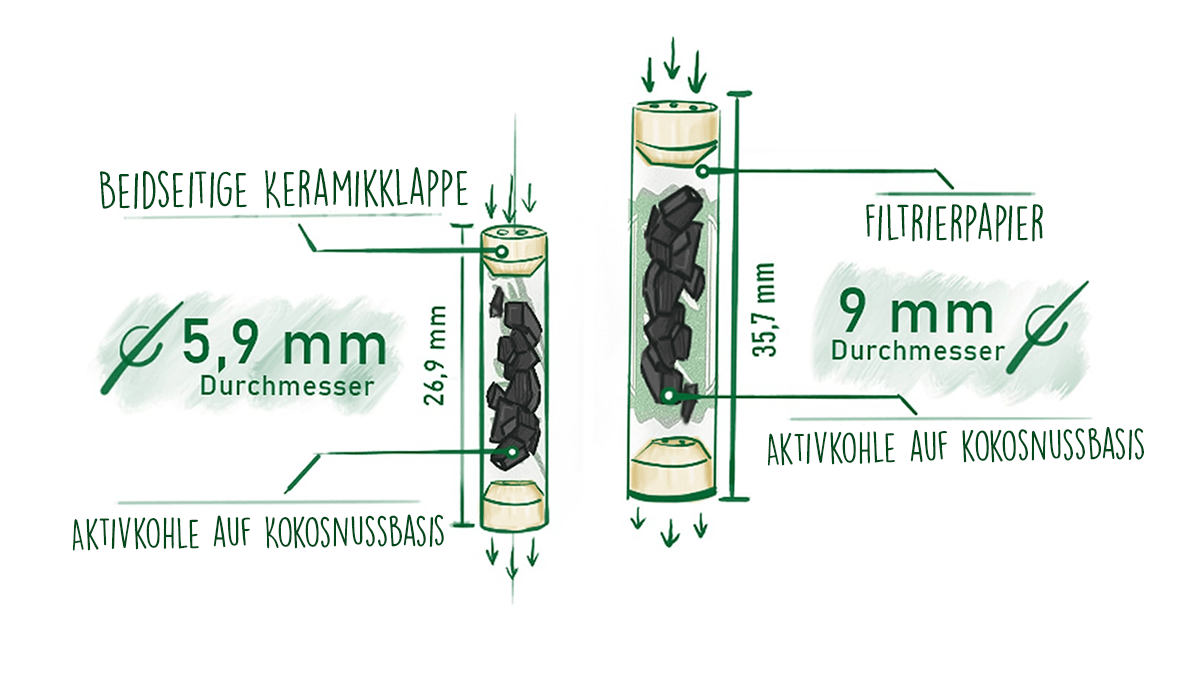 Die Aktivkohle von Purize bietet dir ein kühles, trockenes und aromatisches Raucherlebnis, das deiner Lunge zu Gute kommt! Da beide Endkappen aus Keramik bestehen, gibt es keine Einsteck- oder Eindrehrichtung zu beachten.