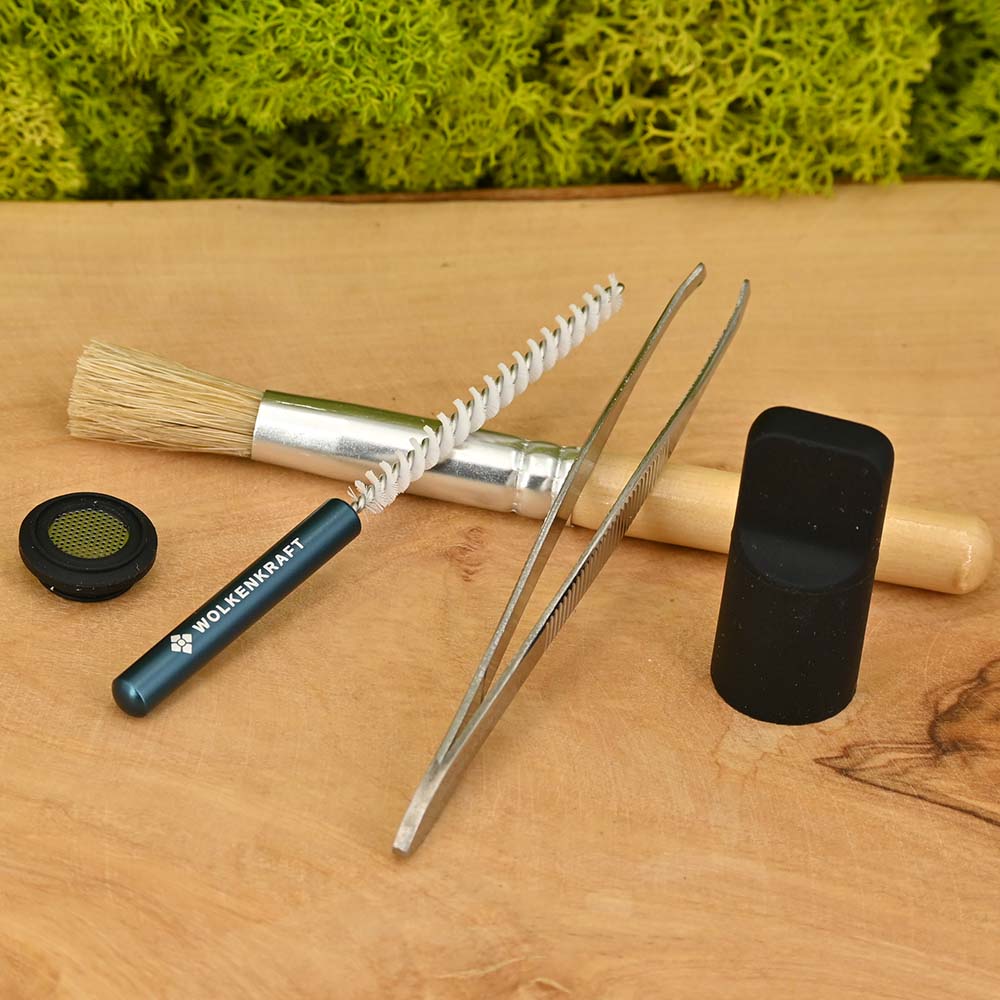 Am besten reinigt man den Vaporizer direkt nach der Benutzung mit der mitgelieferten Bürste. Da die Einzelteile noch warm sind, können Rückstände schnell und einfach entfernt werden.